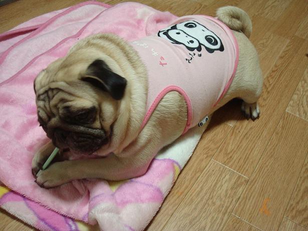 着せてみたら、「なかやまきんに君」みたいな姿になって・・。・゚・(*ノД`*)・゚・。