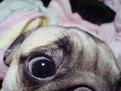寝ている牡丹のお尻で遊んで・・
