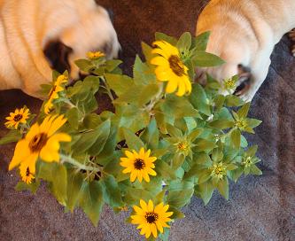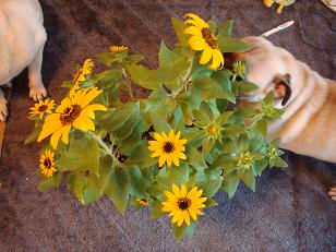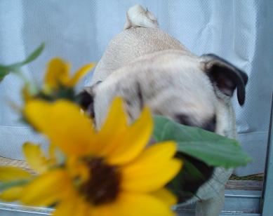 ひまちゃんと花の向日葵(開花開始)
