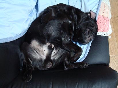 ひまちゃんが踏んでも意地でも起きない日曜のもんさんなのでした。