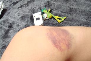 倒れた自転車のハンドルか何かが膝の内側に刺さったのかだんだん痛み始めてね・・。