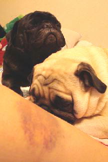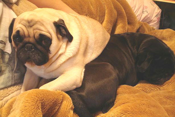 と思ったら寄りかかられるのがイヤでもんじの上に乗って落ち着くぼーちゃ。