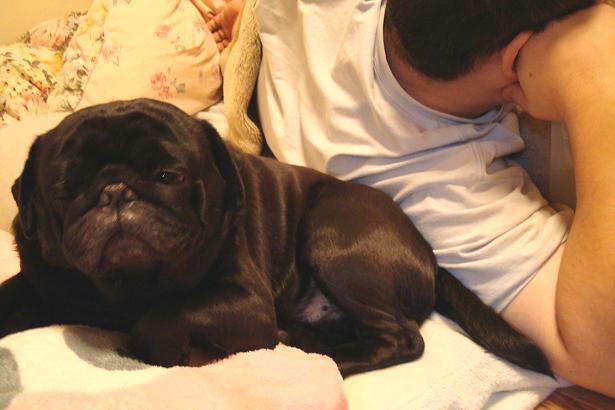 「うちの社長、毎日パグのTシャツなんだよ・・どうよ?( ̄Д ̄;υ)タラー…」