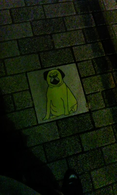 「うちのすぐ近くの道路にパグの絵がある」