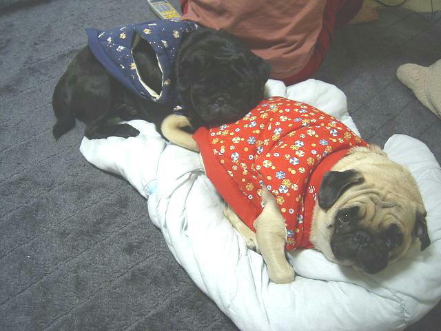 お友達の黒パグ「 まめちゃん 」 がママになりました