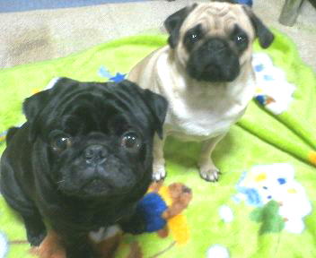 りこさんの パグのモカと小梅
