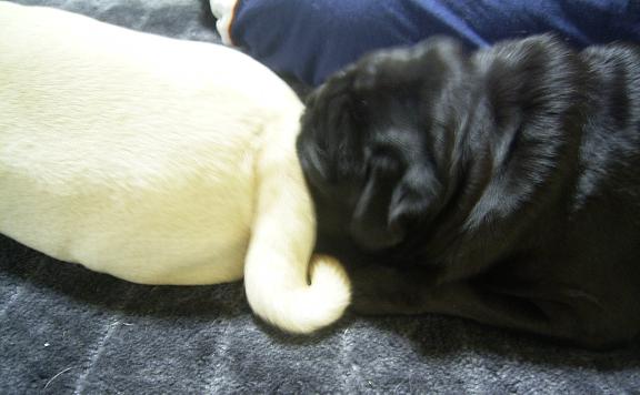 余裕で寝てます・・普通に寝てます・・ペロペロされながら・・・