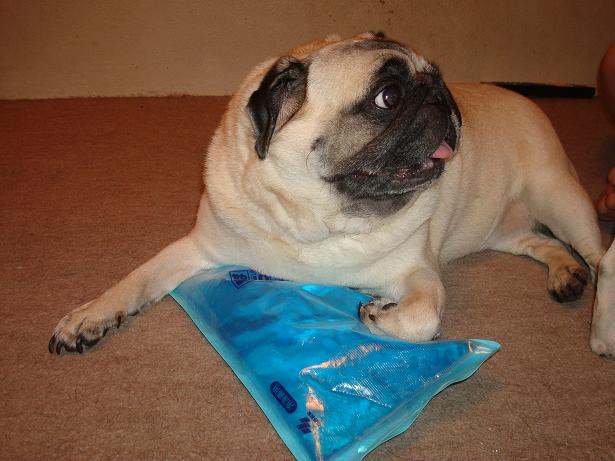『熱さま やわらかアイス枕』で沈静化をはかる牡丹。