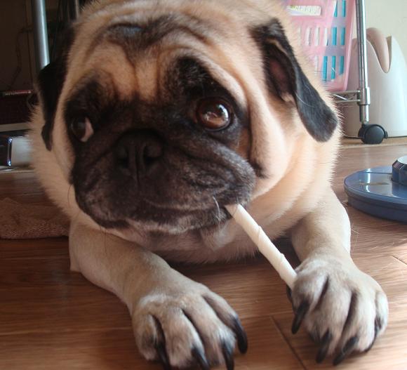 以前は「ブタ耳」を与えてました。(しかもまるごと耳1つの大きなやつ)