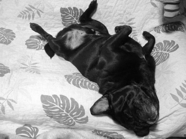 頭がずり落ちそうになっているが爆睡している。